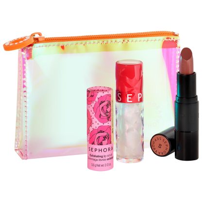 What it is: A trio including a lipstick, gloss, and lip scrub to complete your holiday look anywhere, all the time.