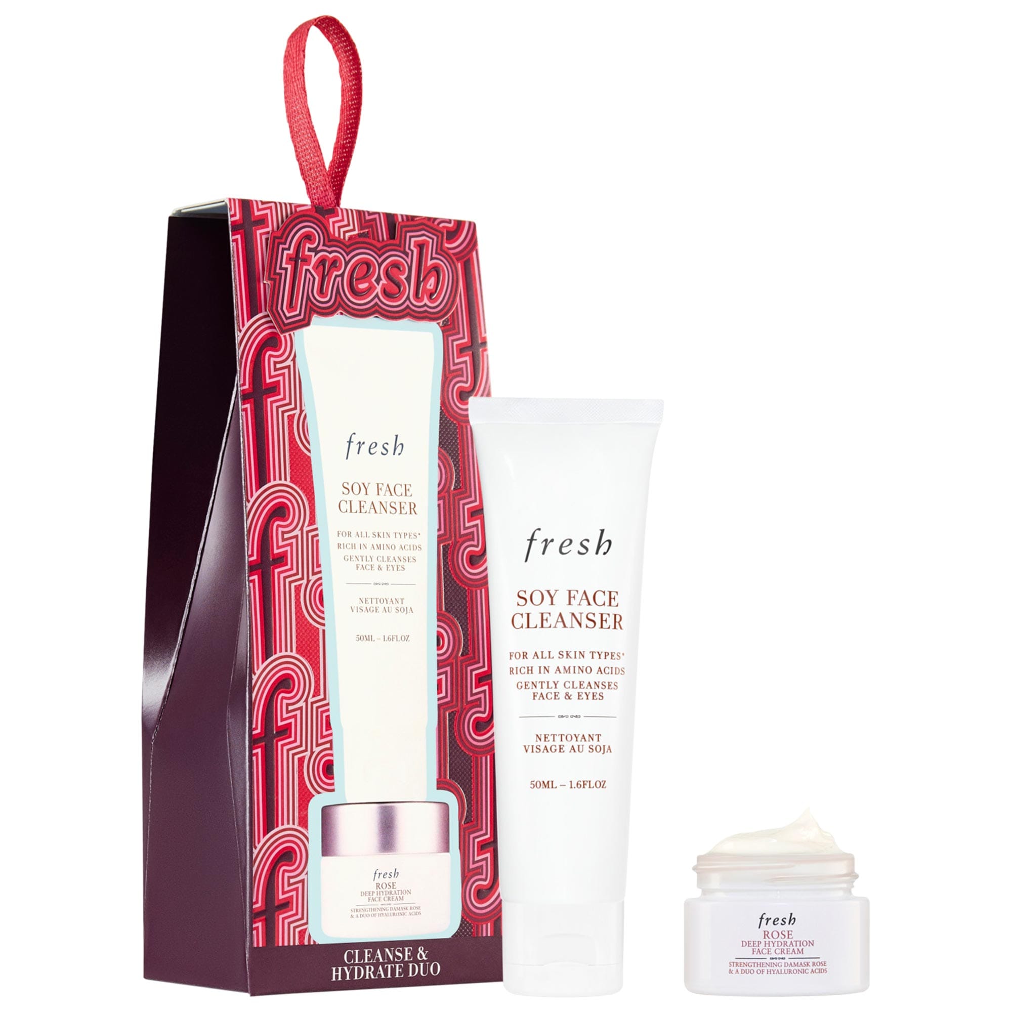 What Else You Need to Know: This skincare set features everyday hydration essentials. Our pH-balanced Soy Hydrating Gentle Face Cleanser gently cleanses and removes makeup. The Rose & Hyaluronic Acid Deep Hydration Moisturizer strengthens skin’s barrier for dewy skin that's plumped with moisture.