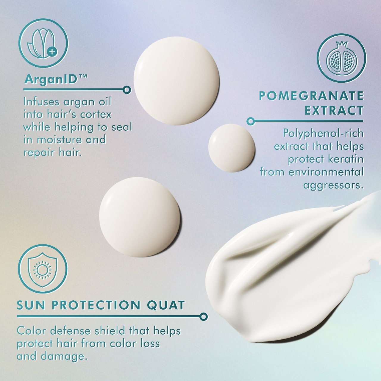 - Sun Protection Quat: Color defense shield that helps protect hair from color loss and damage.