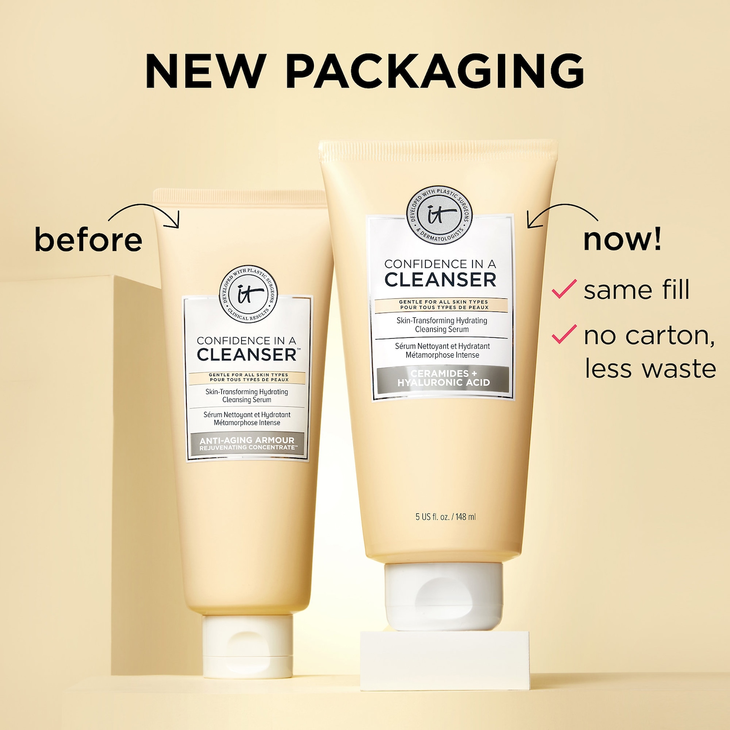 The formula features IT Cosmetics’ proprietary Anti-Aging Armour Rejuvenating Concentrate™ to help your skin appear rejuvenated and restore moisture. It also includes anti-aging collagen, hyaluronic acid, colloidal oatmeal, and a super ceramide complex. Confidence in a Cleanser works over time to deliver dramatic results.