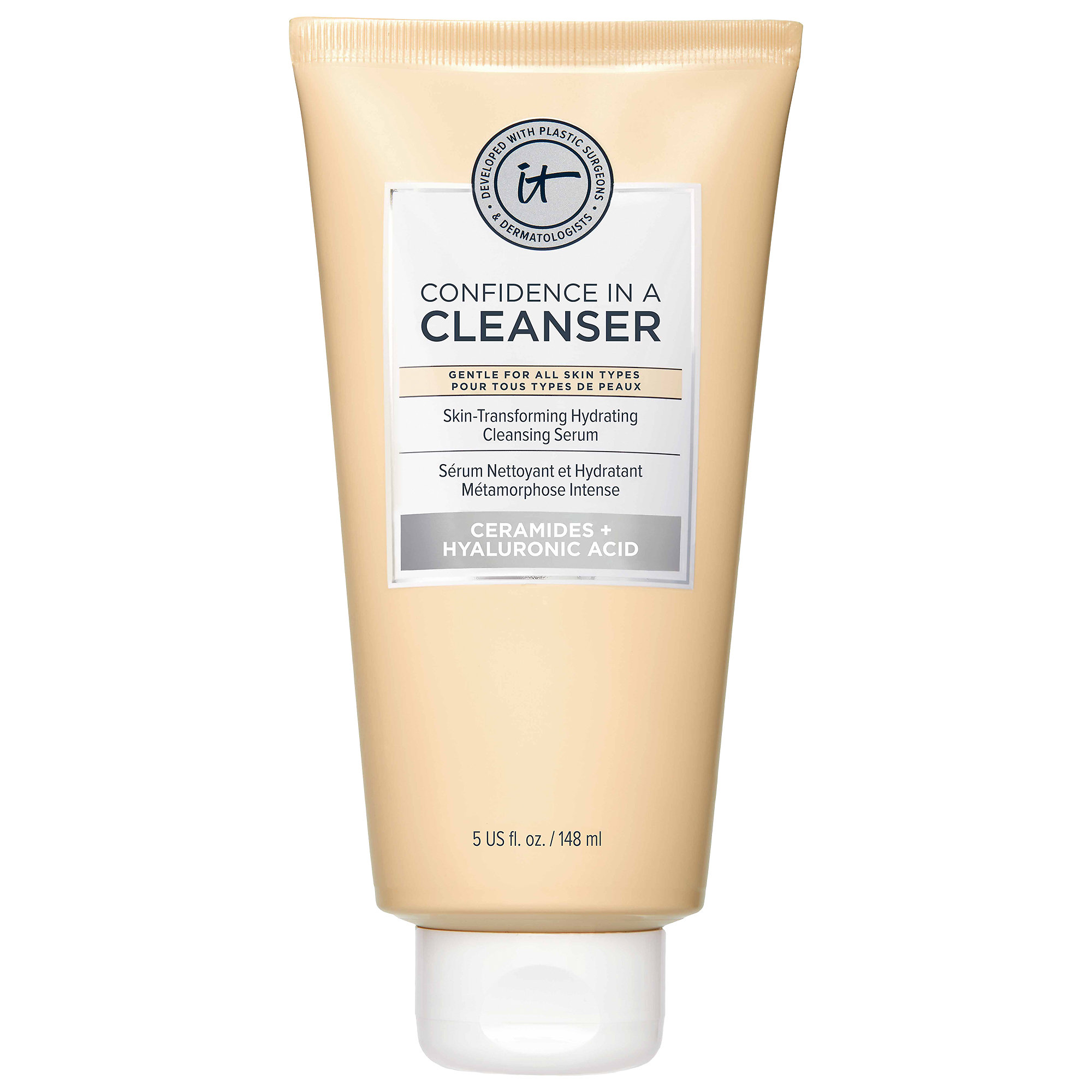 Developed with plastic surgeons, Confidence in a Cleanser™ is your skin-loving, game-changing cleanser and serum in one. This breakthrough skincare solution gently cleanses and moisturizes, leaving your skin feeling soft, refreshed, and perfectly balanced. It’s ideal for all skin types, and is ophthalmologist tested to be safe for your sensitive eye area. This sulfate-free and soap-free facial cleanser removes all traces of makeupeven waterproof eye makeupso your skin feels completely clean.