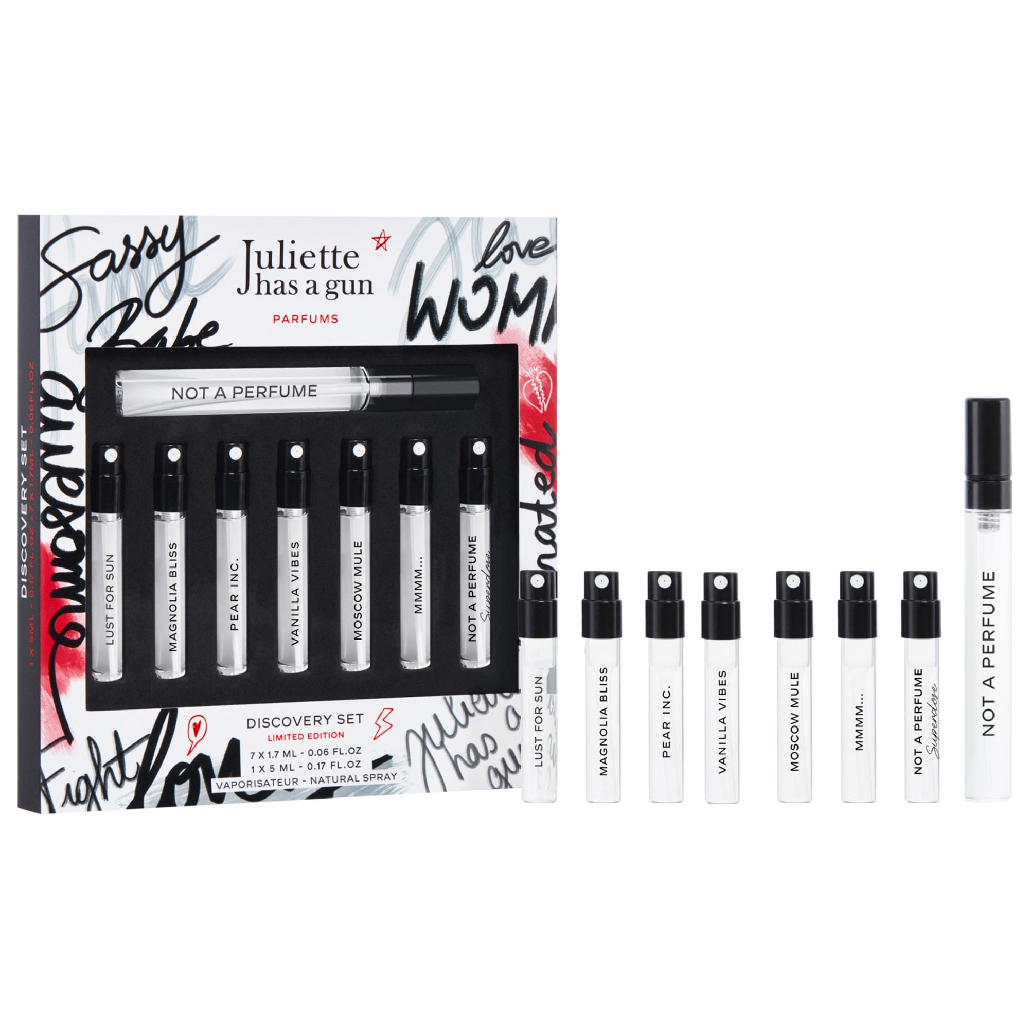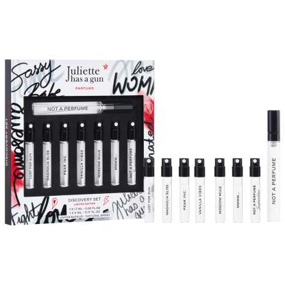 Set Description: Take a sensory journey with the art of perfumery directly from Paris. This mini set features Juliette’s most coveted perfumes by highlighting the creator’s favorites, all designed to make you feel confident, beautiful, and proud of who you are.
