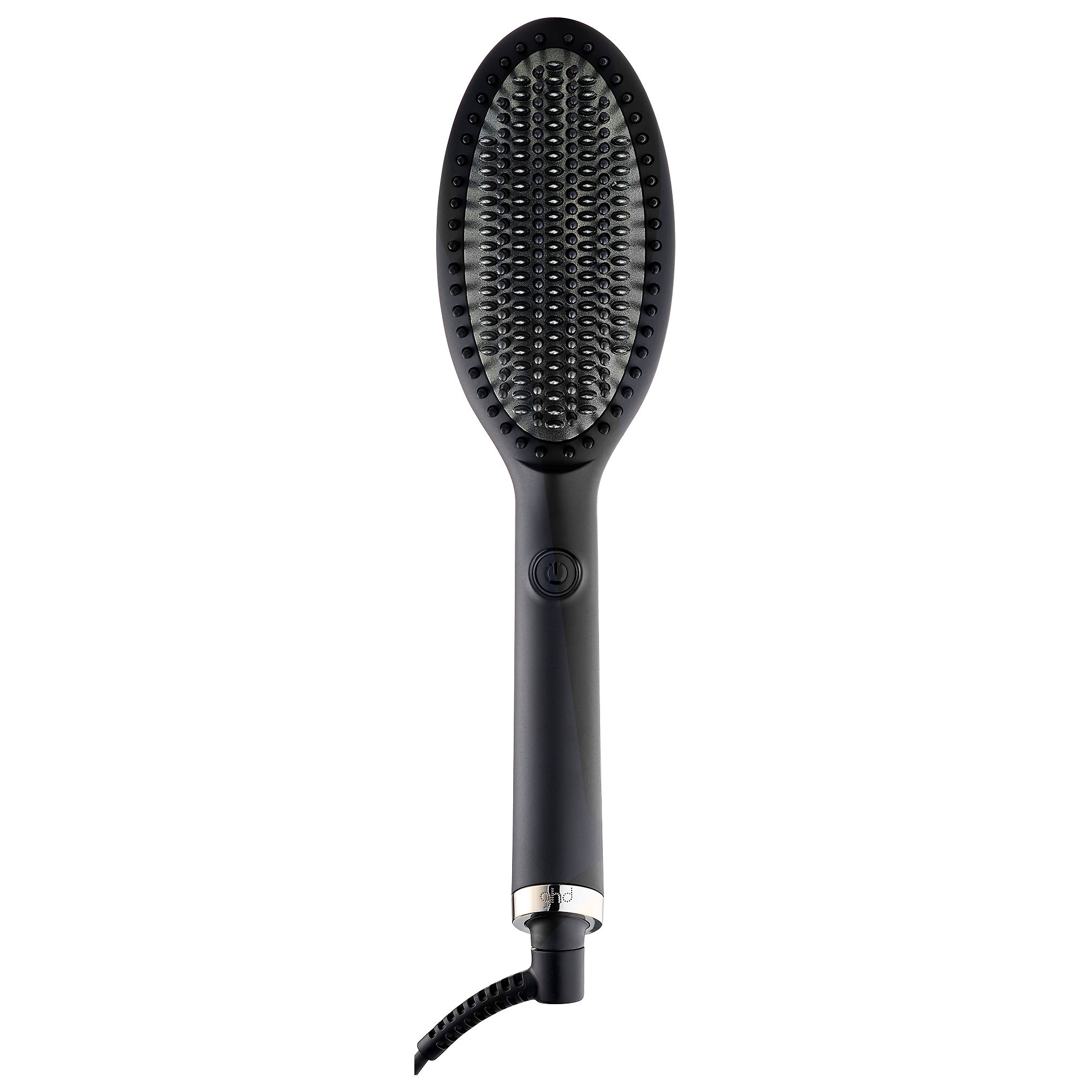 What Else You Need to Know: ghd’s first hot brush features ceramic technology and an ionizer to tame and smooth hair quickly and effortlessly. It has a combination of high-density shorter bristles and longer bristles, and heats to the optimum 365 degrees Fahrenheit for healthier second-day styling. Frizz-eliminating ions smooth the hair in just a few quick strokes. It also features a heat-up light indicator.