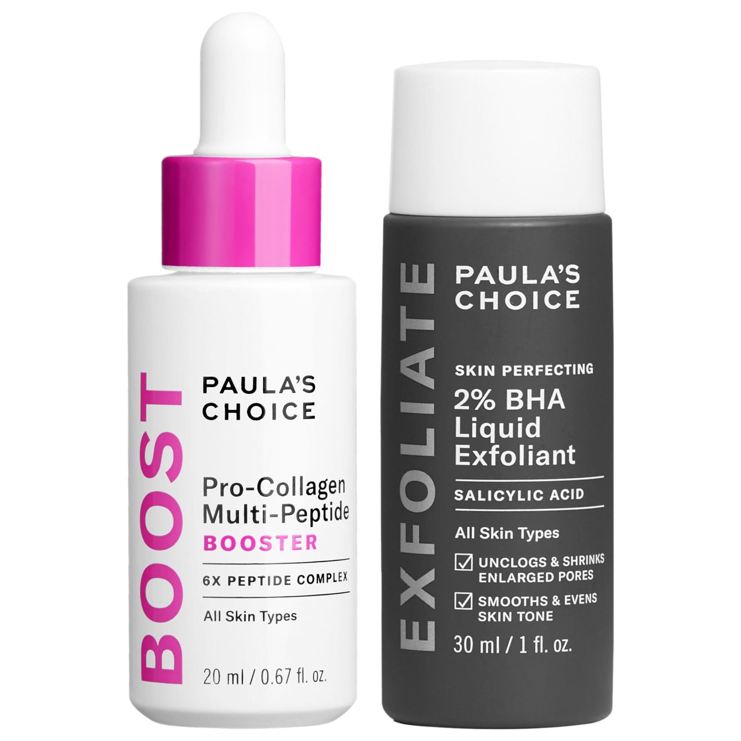 What Else You Need to Know: Paula’s Choice number-one, global bestselling BHA is beloved by editors, dermatologists, and customers for a reason—it unclogs pores, visibly smooths texture, evens the look of skin’s tone practically overnight. Six cutting-edge, pro-collagen peptides offer multi-level support to visibly firm skin at a deeper level. Pair these two products for best results.