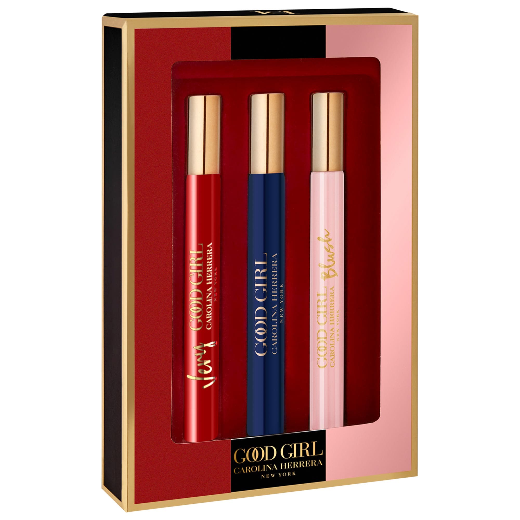 Set Description: Explore the Good Girl collection of fragrances with this set of travel-size rollerballs, which includes Good Girl Eau de Parfum, Very Good Girl, and Good Girl Blush. Good Girl fragrances are daring yet sophisticated scents inspired by Carolina’s unique vision of the duality of the modern woman.