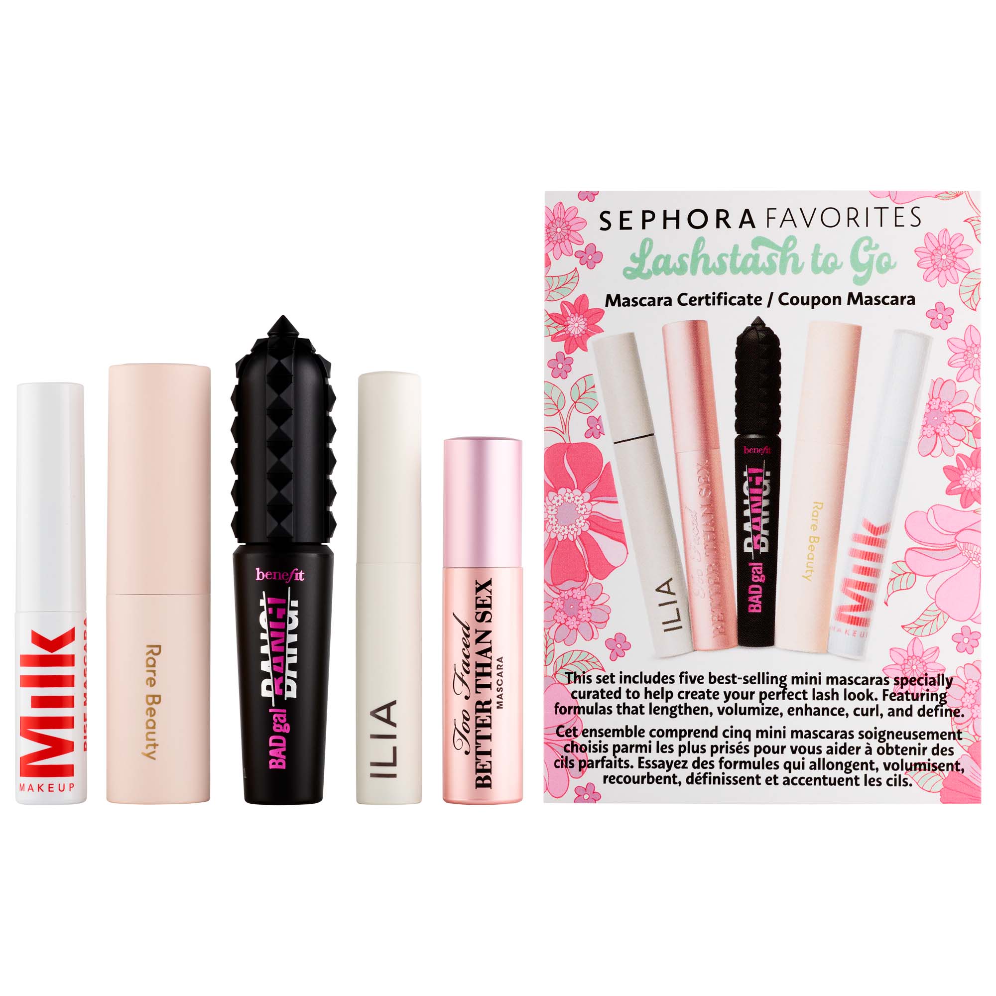 What Else You Need to Know: This set includes five bestselling mini-size mascaras for every eye lash look—without flaking, clumping, or smudging—plus a voucher to redeem a full-size mascara*. Each mascaras features one of Sephora‘s favorite formulas that lengthen, volumize, and condition eyelashes.
