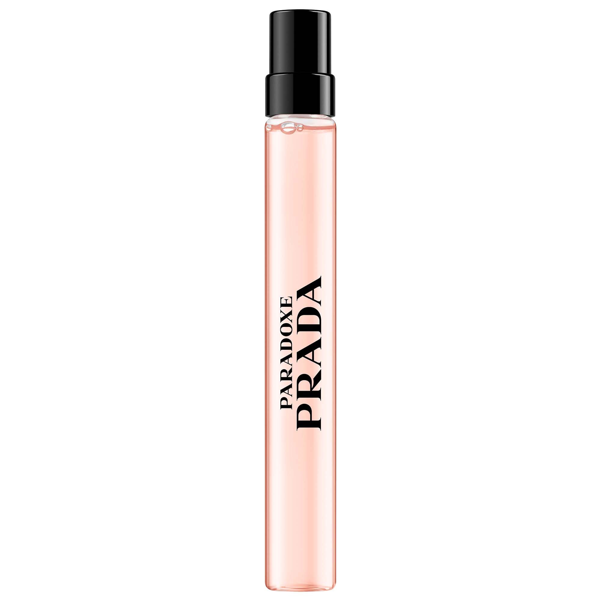 About the Bottle: This refillable perfume bottle reinvents the most iconic code of the Prada brand: its triangle logo. Tilted yet powerfully grounded, the radical shape of the bottle is softened by rounded edges while the coral-pink color of the fragrance contrasts with the black cap and Prada coat of arms. The perfume bottles have been designed to limit use of glass and the boxes are FSC™ MIX certified, ensuring a sustainable choice of paper and paperboard. The entire Prada Paradoxe range is refillable, allowing for less packaging material. A single 50 mL bottle of Prada Paradoxe and a 100 mL refill uses 40 percent less materials in total versus three 50 mL bottles. This includes 29 percent of glass, 67 percent of metals, 46 percent of plastics, and 39 percent of cardboard.