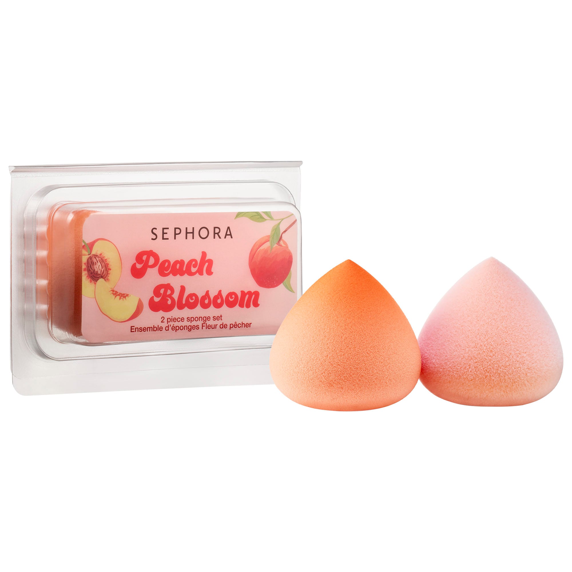 What it is: A two-piece set of latex-free, peach-shaped and -scented sponges infused with peach powder.