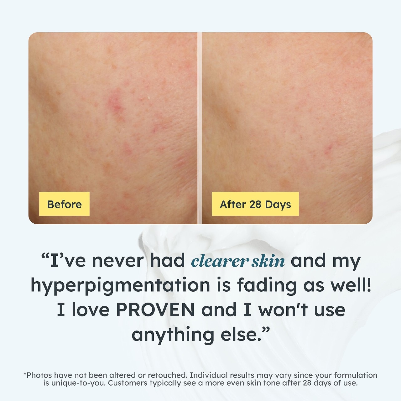 What Else You Need to Know: PROVEN uses patented, award-winning technology to create personalized skincare tailored to your skin type, skin goals, lifestyle, and environment. Based on our proprietary Skin Genome Project™ database, the world’s largest beauty knowledge base, our technology turns millions of scientific data points on ingredient efficacy into effective, custom skincare formulations that deliver results.