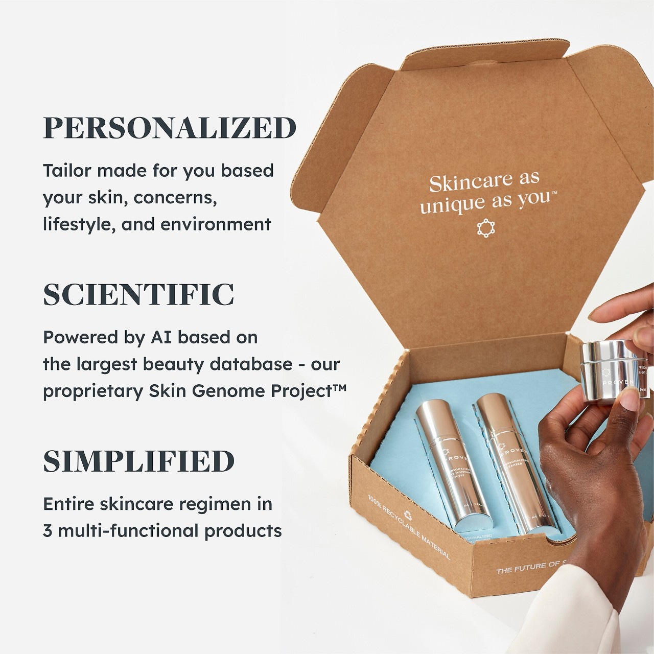 What it is: 3-Step Personalized System: Night Cream, SPF Day Moisturizer, and Cleanser formulated for your skin type, skin needs, lifestyle, and environment.*Exclusive Subscription Benefits: - Save 23% on every set: Enjoy a discounted price of $129.99 on each set of Personalized Cleanser, Day Moisturizer, and Night Cream plus FREE SHIPPING when you select “Ships Every 2 Months” at checkout. By selecting “Ships Every 2 Months,” you understand that the payment method on file will be charged $129.99 by PROVEN every 2 months, until you cancel. To review all terms & conditions, including how to manage your subscription, please visit PROVEN’s website https://sephora.provenskincare.com/terms-and-conditions.- Evolving products: With each shipment, PROVEN adapts its formulas to your current life, environment, and skin needs—with key ingredients increasing in concentration and effectiveness