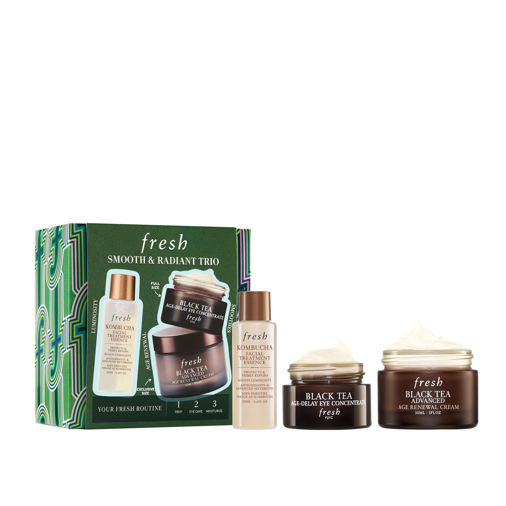 What it is: Reveal a firm, radiant look with this 3-step set. Enjoy a travel-size Kombucha Essence, full-size Black Tea Eye Cream & exclusive set size face cream.