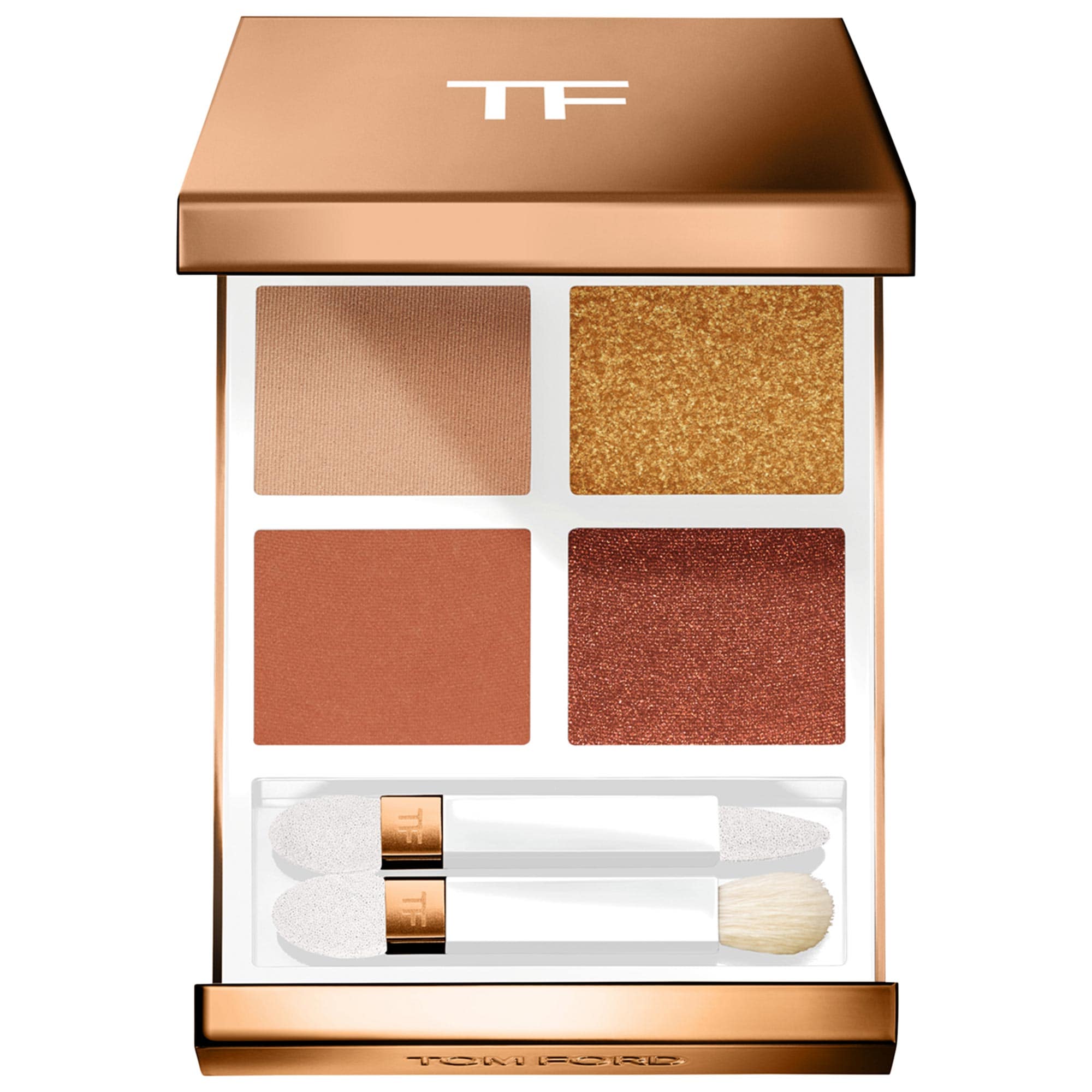 - 4 x Warm peachy-copper hues (mix of shimmer and matte shades)