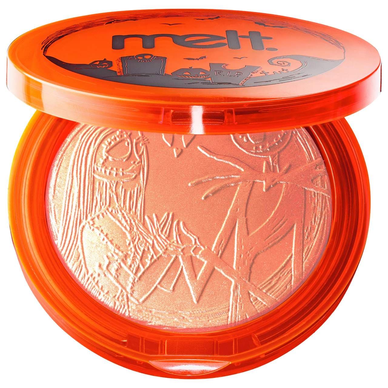What it is: A sheer-pink highlighter with a soft-pink sparkle—featuring the iconic duo Jack and Sally.
