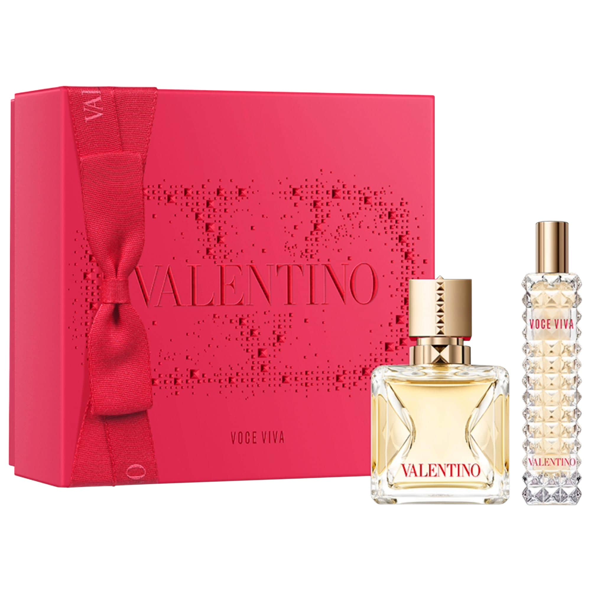 Set Description: Give the gift of Valentino with this two-piece set featuring Voce Viva Eau de Parfum. This warm, floral perfume is a harmony of orange blossom and golden gardenia paired with Italian bergamot and mandarin and blended atop an unexpected cool note of crystal moss accord and vanilla.