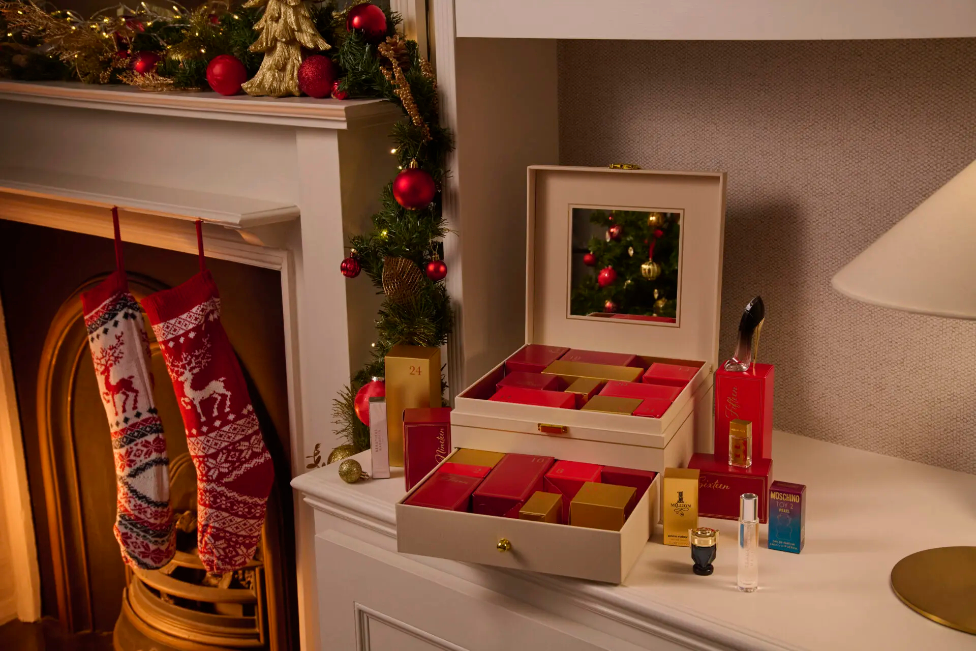The 2024 advent calendar has been designed to be reused. The 24 treats inside are housed in a gorgeous box with a built-in mirror. They encourage you to keep your box to hold your keepsakes and treasures.