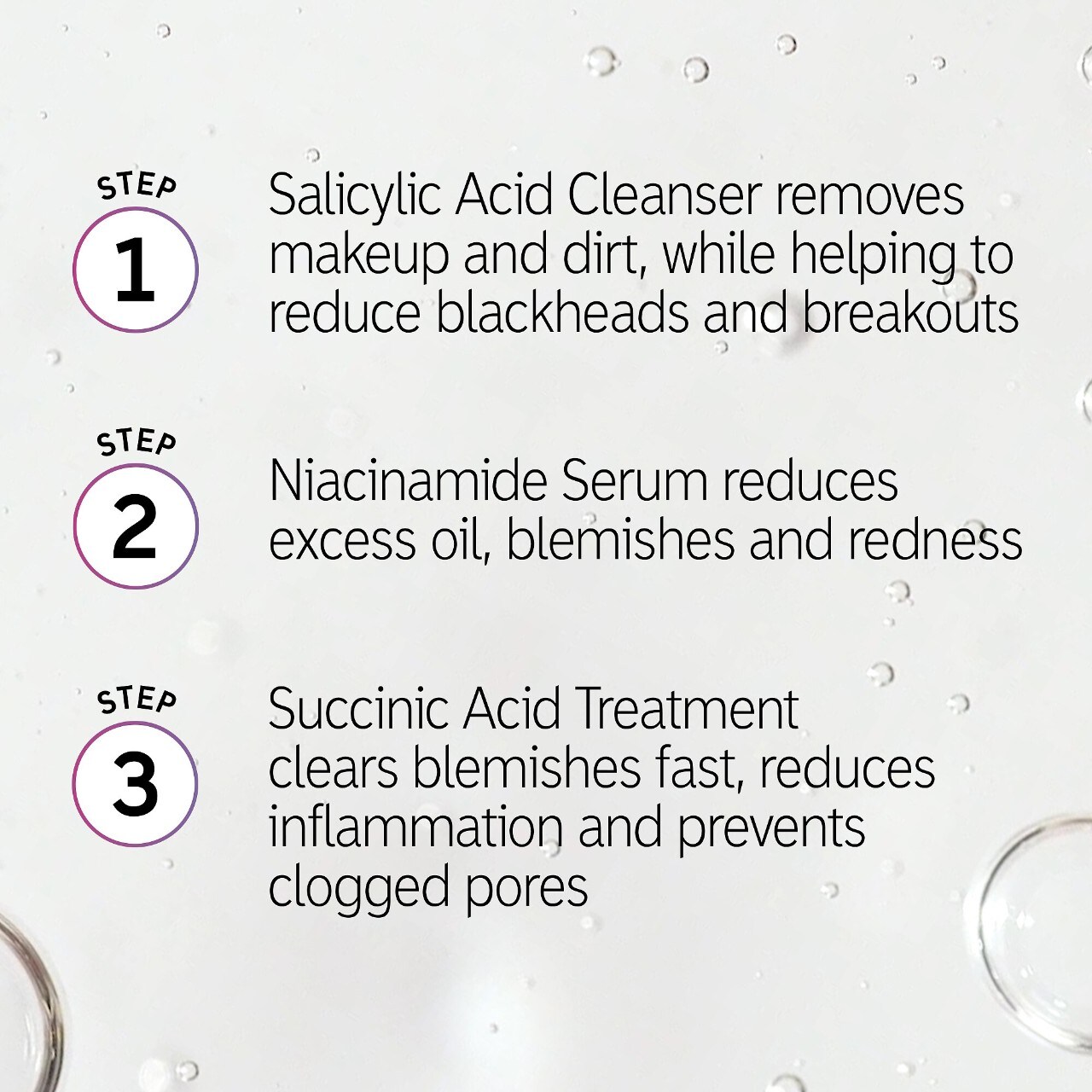 What Else You Need to Know: Keep acne at bay with this three-piece set. The Succinic Acid Acne Treatment is a non-drying, gentle, targeted formula that visibly minimizes acne spots fast while layering under makeup without flaking. The Niacinamide Oil Control Serum absorbs excess oil while reducing the look of blemishes, redness, and hyperpigmentation, and the Salicylic Acid Acne + Pore Cleanser dissolves makeup and dirt while penetrating pores to visibly diminish blackheads and breakouts.