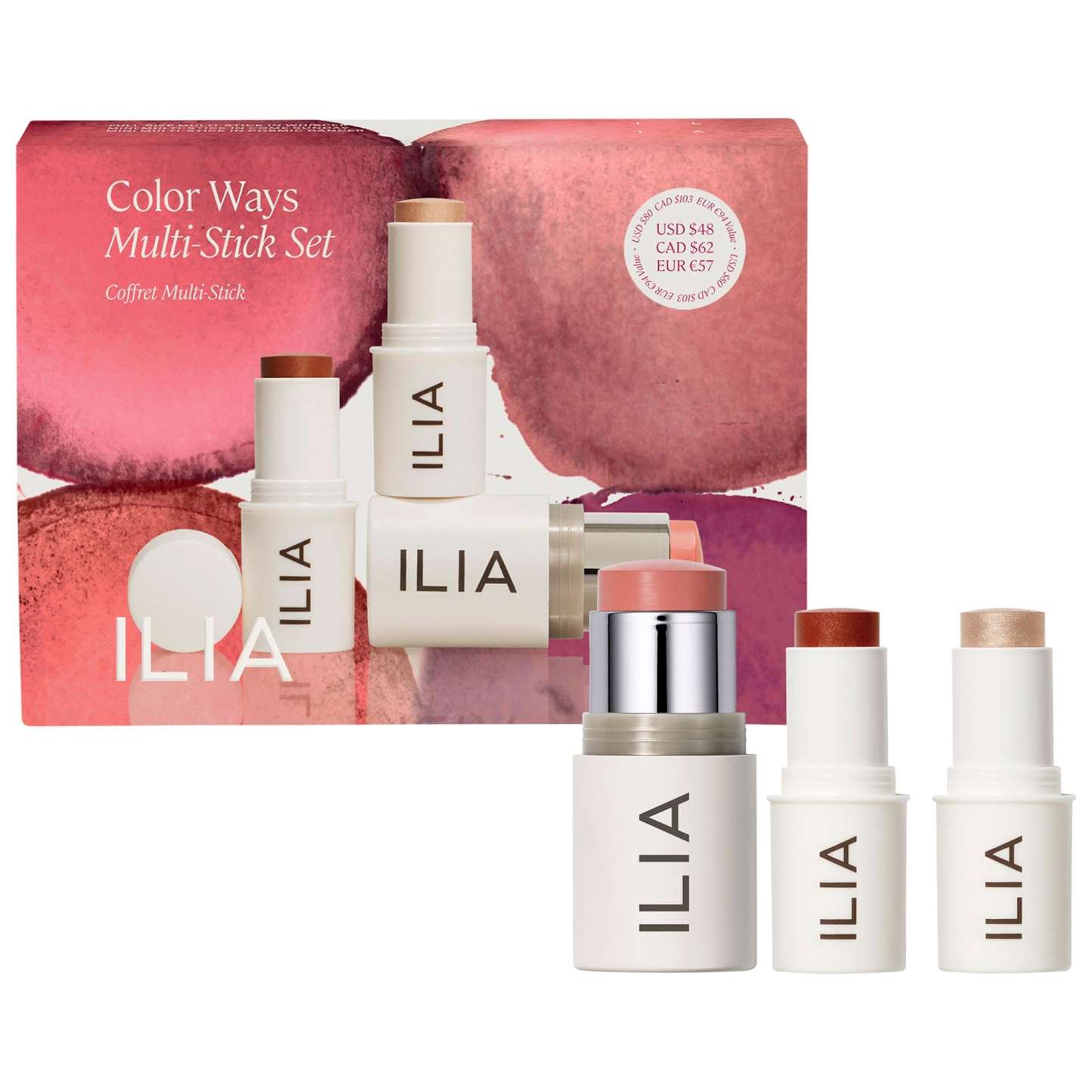 What Else You Need to Know: Create your holiday color story with three buildable, blendable shades for cheeks and lips. Keep it simple with a single swipe, or mix, match, and layer to customize your look. Wrapped in an artful gift box with a watercolor motif, it’s all set to give—or keep.