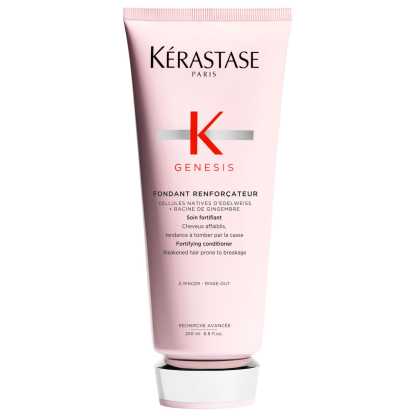 Key Benefits: - Intensely Moisturizes and Adds Body- Strengthens Hair Weakened by Heat Damage and Brushing- Easily Detangles and Prevents Split Ends.Highlighted Ingredients:- Edelweiss Native Cells and Ginger Root: Detangle and moisturize while immediately increasing strength and softness. Ingredient Callouts: Free of sulfates SLS & SLES.What Else You Need to Know: A primary contributor to hair fall, breakage occurs when hair is weakened by daily aggressors, including heat, brushing, and over-styling. This lightweight, fortifying conditioner intensely hydrates to address hair fall caused by breakage from brushing. Sulfate- and silicone-free, the balm-like formula is recommended by professional stylists to easily detangle, soften, and add body and shine.Fragrance Description: The bright, invigorating scent unfolds with top notes of bergamot zest, cedrat, and lime; base notes of basil, bergamot flower, and rose; and base notes of vetiver, musk, and tonka bean.Clinical Results: In a controlled study using a system of Genesis Strengthening Shampoo for Normal to Oily Hair, Genesis Strengthening Conditioner, and Genesis Strengthening Serum for Hair and Scalp vs. a non-conditioning shampoo, results showed:- 98% less breakage- 97% less hair fall due to breakage from brushing
