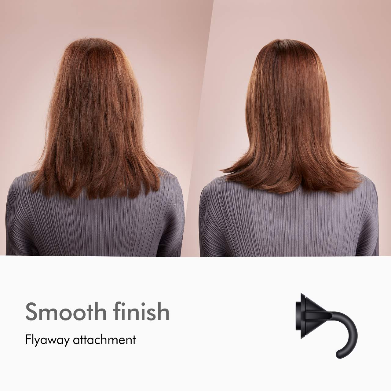 Flyaway attachment: The ideal finishing tool for sleek, straight styles. It hides flyaways under longer hair to give you a smooth, shiny finish¹ with just air.