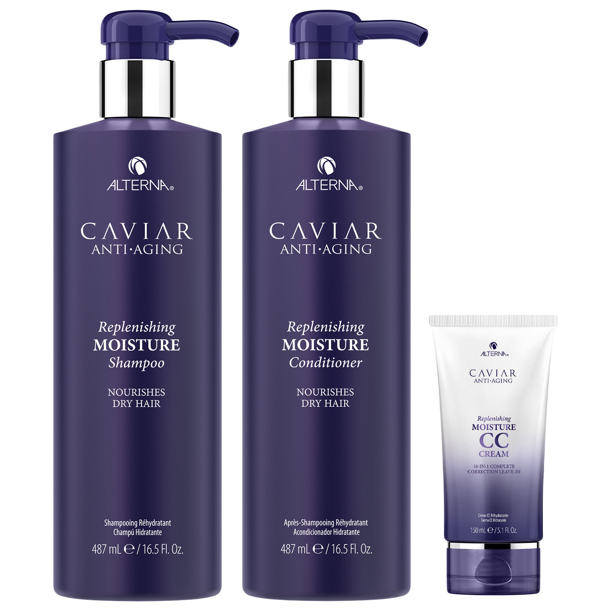 What Else You Need to Know: Caviar Anti-Aging Replenishing Moisture Trio helps to restore moisture to hair for noticeably softer, smoother, shinier hair that feels transformed after one use. Formulated with Caviar Extract and Sea Silk®, the formula helps target the physical, environmental, and natural signs of aging and stress that can cause hair to become dry and prone to breakage. This product is clinically proven to provide moisture, smoothness, and manageability while reducing breakage by more than 99 percent and providing thermal protection up to 450°F compared to untreated hair when used with Caviar Anti-Aging Replenishing Moisture Conditioner.