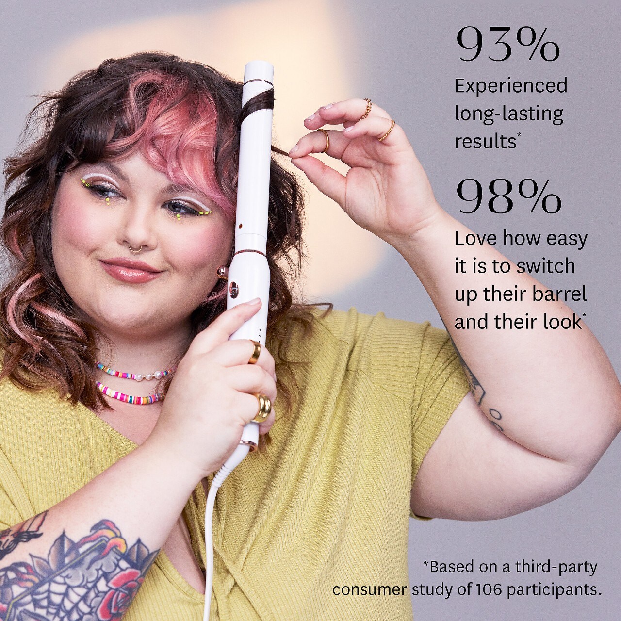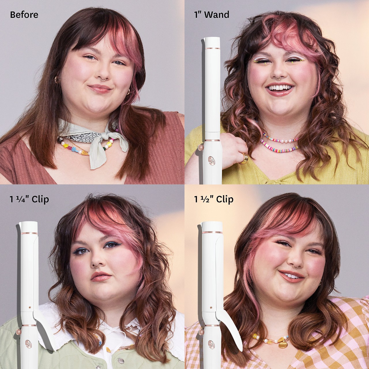 - Interchangeable 1” wand, 1.25” clip, and 1.5” clip barrels for maximum styling versatility