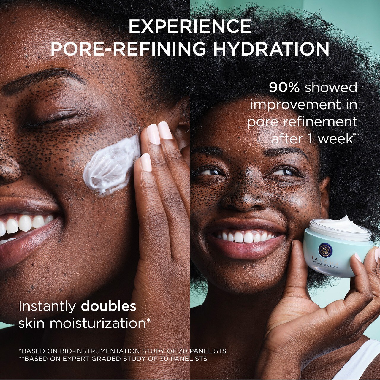 -90% demonstrated an improvement in pore refining after immediate** use.100% demonstrated an improvement in skin moisturization immediately** after use.